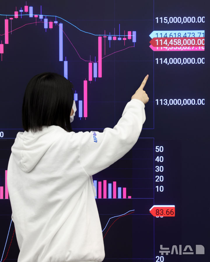 [서울=뉴시스] 이영환 기자 = 도널드 트럼프 미국 대통령발 관세 전쟁에 비트코인 가격이 7만5000달러선까지 하락한 9일 오전 서울 강남구 업비트 고객센터 전광판에 시세가 표시되고 있다. 2025.04.09. 20hwan@newsis.com |