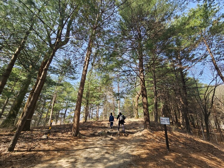 대전현충원 둘레길 1코스인 빨강길을 벗어나 주황길 쪽으로 가고 있다. 최예린 기자 |