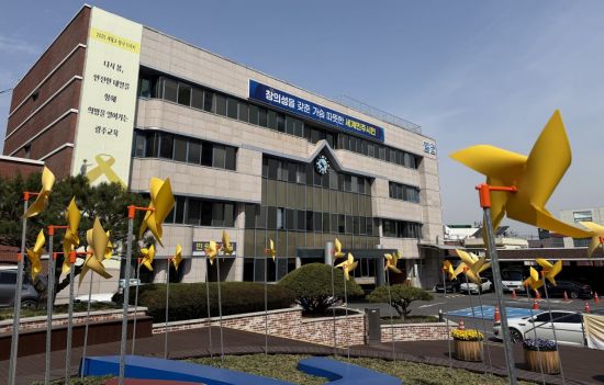 광주교육청이 세월호 참사 11주기를 맞아 14일부터 18일까지를 계기교육 주간으로 지정하고, 노란 리본 달기, 추모 문구 게시, 안전 실천 다짐 선언, 사이버 추모관 운영, 바람개비 설치 등 추모 행사를 진행한다. 교육청 본청 주변에는 노란 바람개비가 설치돼 304명의 희생자를 기리는 공간으로 조성됐다. 광주교육청 제공 |