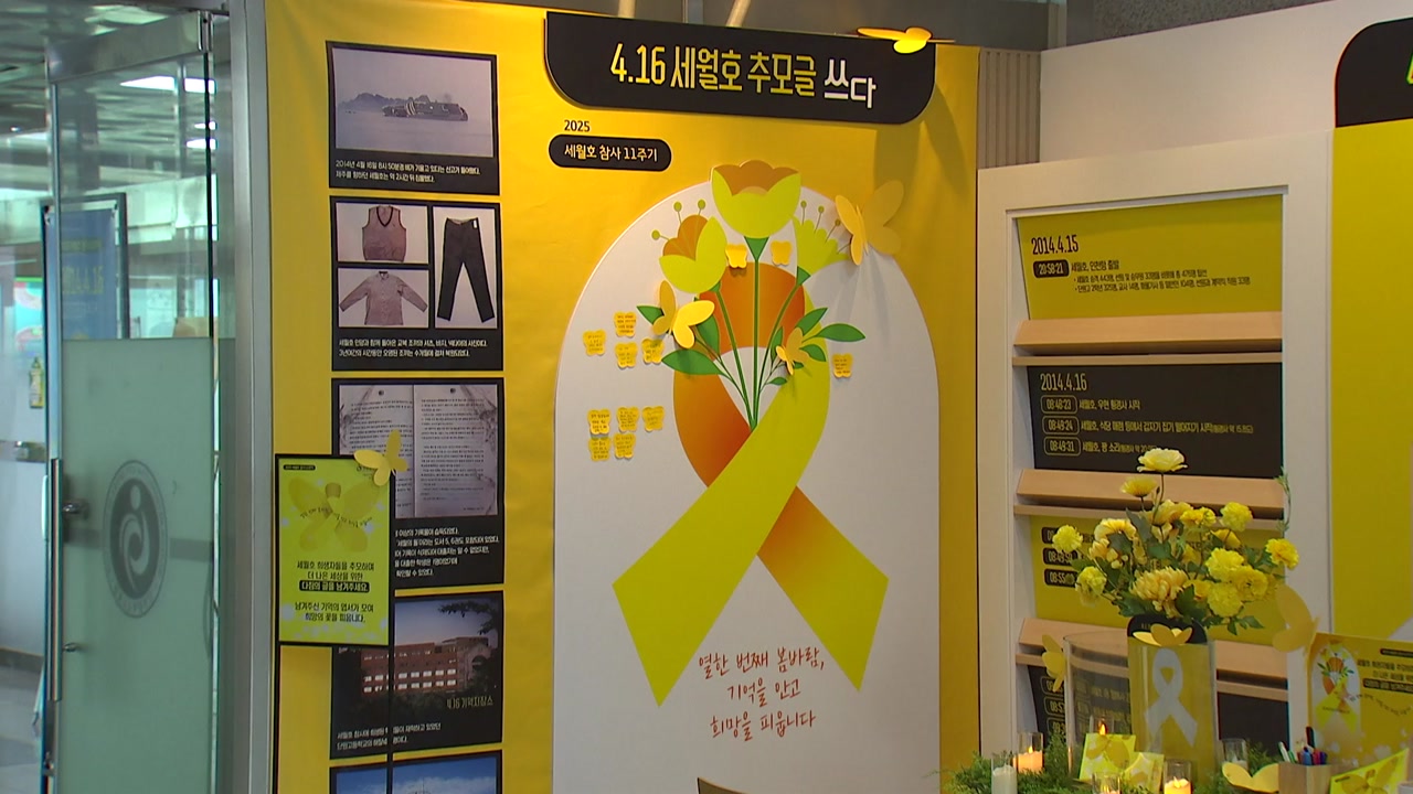 인천시교육청이 오는 16일까지를 세월호 참사 11주기 추모 주간으로 정해, 정보센터 1층에 추모 부스를 두고 사료 전시와 글쓰기 행사 등을 엽니다.