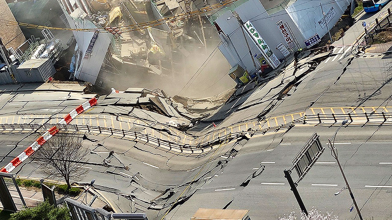 지금 심하게 균열이 일어나면서 완전히 붕괴된 도로의 모습을 보여드렸습니다.