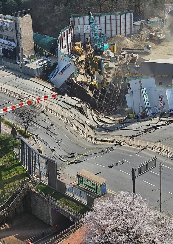 앞서 이날 0시 30분께 해당 현장에서는 '투아치(2arch)' 구조로 시공 중인 지하 터널 내부의 가운데 기둥(버팀목) 다수에 균열이 발생했다는 신고가 접수됐다. 이에 주변 도로 통행은 전면 통제된 상태였다.
