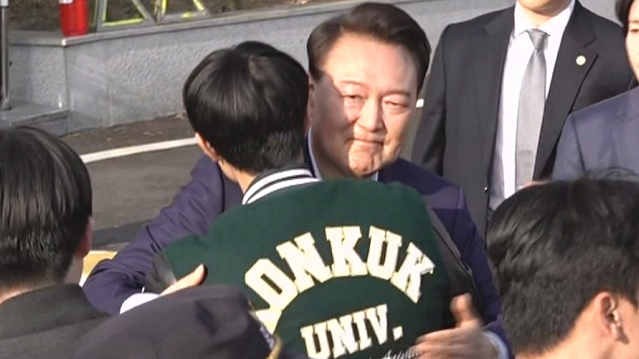 윤 전 대통령은 차에서 걸어 나와 가장 앞에 나와 있던 대학 점퍼를 입은 청년 지지자들을 일일이 껴안았습니다.