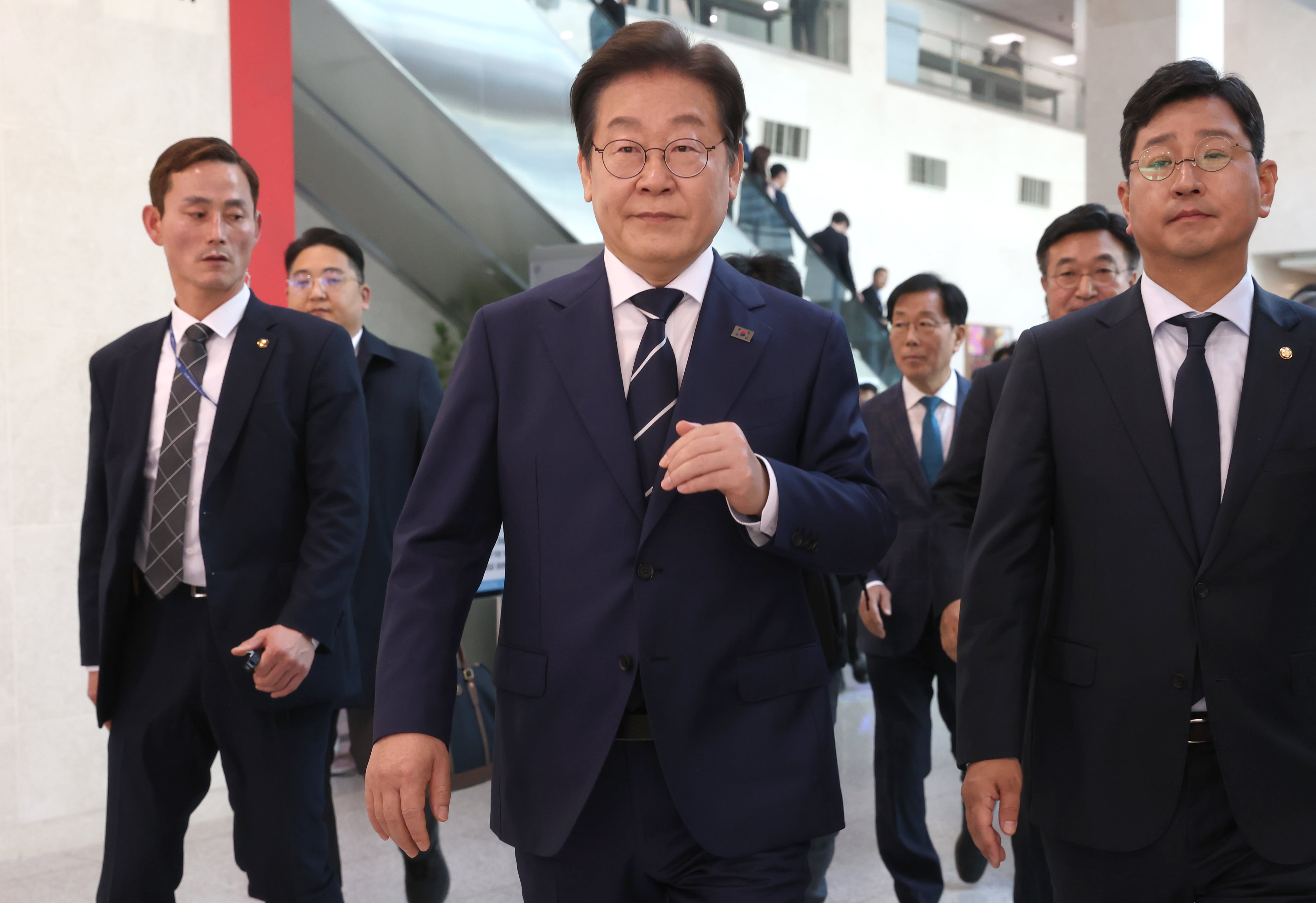 제21대 대통령선거에 출마를 선언한 이재명 더불어민주당 전 대표가 11일 오전 서울 여의도 국회 소통관에서 비전 및 캠프 인선을 발표를 마친 후 기자회견장을 나서고 있다./뉴스1 |
