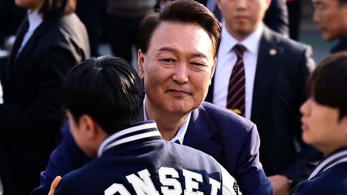 대학생으로 추정되는 청년들을 한 명 한 명 안아주기도 했습니다.