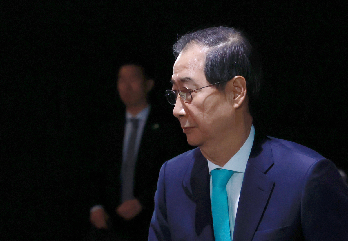 한덕수 대통령 권한대행 국무총리가 11일 서울 서대문구 국립대한민국임시정부기념관에서 열린 대한민국임시정부 수립 106주년 기념식에 기념사를 위해 이동하고 있다. 대통령실통신사진기자단 |