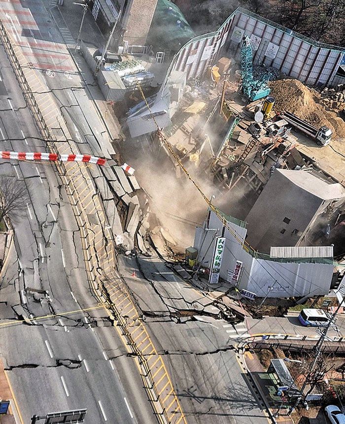 목격자들에 따르면, 사고 발생 순간 갑자기 왕복 6차선 도로 한가운데 땅이 폭삭 꺼지면서 바로 옆 지상에 있던 공사 시설물까지 균형을 잃고 땅속으로 빨려 들어갔다. 희뿌연 흙먼지가 피어올랐고, 주변 약 50m 구간이 쩍쩍 갈라졌다고 한다. 지하 공사 현장이 무너지면서 그 여파로 지상 도로까지 내려앉은 것이다. 인근에서 식당을 운영하는 A씨는 “붕괴와 동시에 ‘쾅’ 하는 소리와 함께 전기가 끊겼다”며 “전조 증상이 전혀 없었기 때문에 크게 놀랐다”고 말했다.