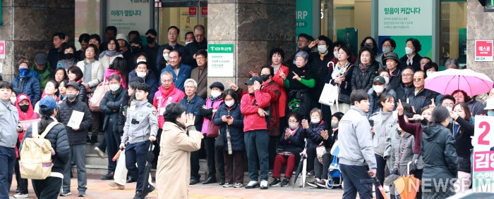 [서울=뉴스핌] 이형석 기자 = 서울 동대문구 회기역 일대에서 유권자들이 선거 출마 정치인 유세를 듣고 있는 모습 [사진=뉴스핌DB] |