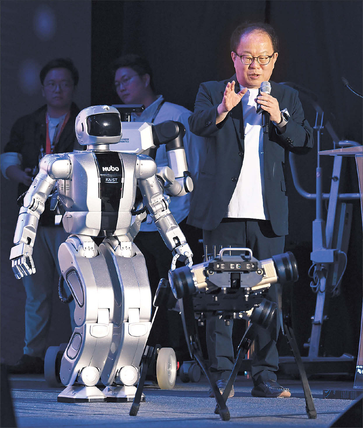 오준호 레인보우로보틱스 설립자가 대전시 유성구 KAIST 류근철 스포츠 콤플렉스에서 ‘신인류가 온다’의 주제로 열린 ‘이노베이트 코리아 2024’에서 강연을 하고 있다. [대전=임세준 기자] |