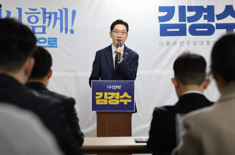 더불어민주당 대권 주자인 김경수 전 경남지사가 14일 서울 영등포구 선거캠프 사무실에서 대통령 집무실과 관련한 입장을 밝히고 있다. (사진=연합뉴스) |