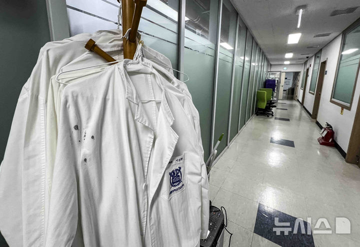 [서울=뉴시스] 김근수 기자 = 서울 시내의 한 의과대학 강의실 앞에 흰색 가운이 놓여 있다. 2025.03.31. ks@newsis.com |