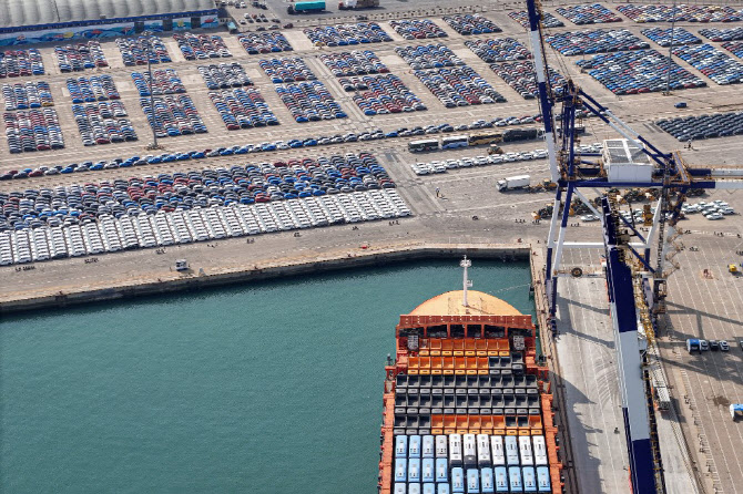 중국 산둥성 옌타이의 한 항구에서 수출용 자동차들이 들어서있다. (사진=AFP) |