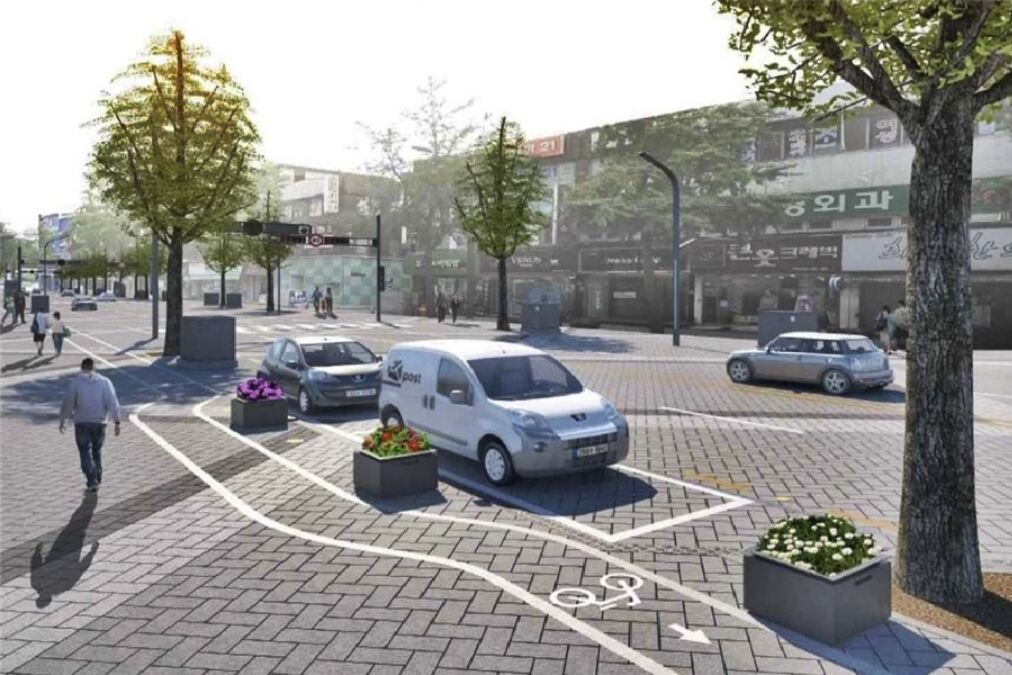 전주시가 보행환경특화거리로 지정한 충경로 인도에 계획한 포켓주차장 조감도. 전주시 제공 |