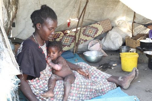 내전으로 한쪽 팔 일부 잃은 수단 난민 아동 |