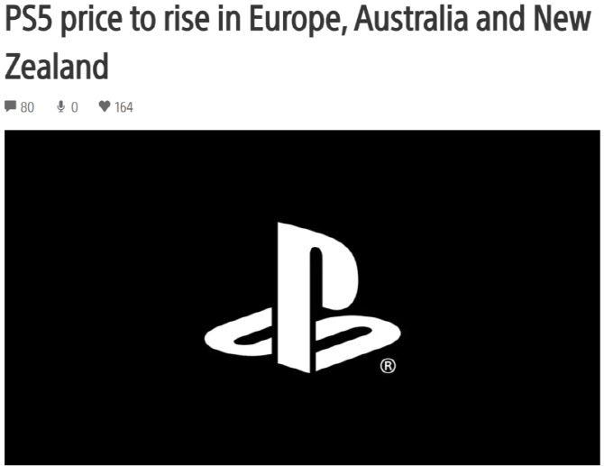 이날 이사벨 토마티스 소니 글로벌마케팅 부사장은 공식 PS5 블로그에 “높은 물가 상승과 환율 변동 등 어려운 경제 환경 속에서 유럽, 아프리카 일부 지역, 호주, 뉴질랜드 등에서 PS5 콘솔의 권장 소비자 가격을 인상한다는 힘든 결정을 내렸다”고 밝혔다.