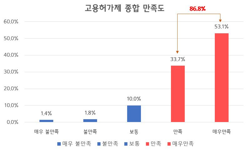중소기업중앙회가 고용허가를 통해 외국인력을 활용 중인 중소기업 1,177개사를 대상으로 설문조사를 실시한 결과, 응답기업의 86.8%가 현핸 고용허가제에 만족한다며 긍정적인 답변을 내놨습니다.