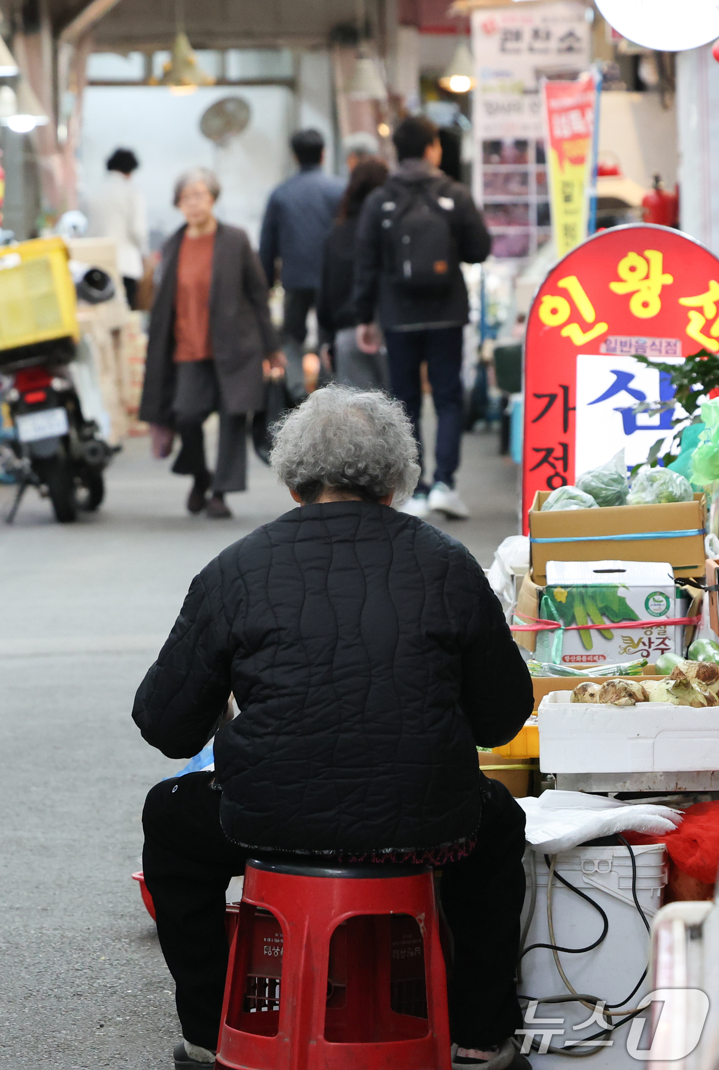 (서울=뉴스1) 허경 기자 = 정부는 15일 최상목 부총리 겸 기획재정부 장관 주재로 경제관계장관회의 겸 산업경쟁력강화 관계장관회의를 열고 추경 방향을 발표했다. 민생 분야에서는 소상공인과 취약계층을 위해 4조 원 이상을 지원한다. 먼저 소상공인이 공공요금과 보험료 납부에 사용할 수 있는 연간 50만 원의 '부담경감 크레딧' 사업을 신설할 예정이다. 사진은 이날 서울 종로구의 한 전통시장 모습. 2025.4.15/뉴스1