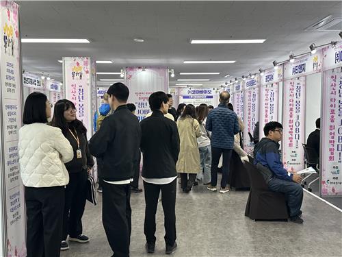(익산=연합뉴스) 김진방 기자 = 전북 익산시는 15일 청년과 기업의 지역 정착을 돕는 통합형 일자리 플랫폼인 '다이로움 취업박람회'를 개최했다.