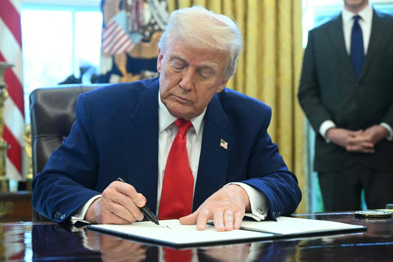 도널드 트럼프 미국 대통령이 지난 9일(현지시간) 미 워싱턴 백악관 집무실에서 행정명령에 서명하고 있다.AFP연합뉴스