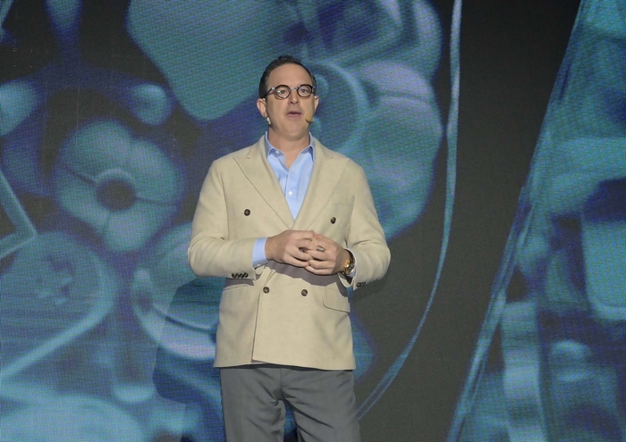 맷 브롬버그 유니티 CEO 겸 사장이 15일 서울 강남구 코엑스에서 열린 유니티 개발자 콘퍼런스 ‘유나이트 서울 2025’ 기조 강연에서 발표하고 있다. [사진 = 유니티] |