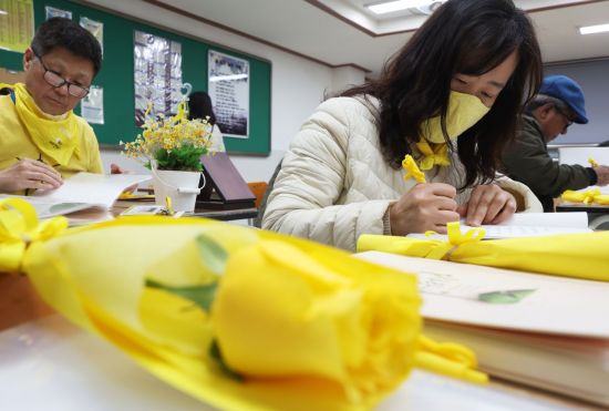 전교조 광주지부는 "우리는 오늘도 멈추지 않는 걸음으로 진실을 향해 나아가고 있는 유가족들을 기억한다. 현장 교사들과 함께 기억의 교실에서 참사의 교훈을 교육활동으로 이어갈 것"이라고 밝혔다.