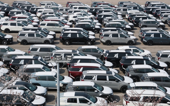 10일 경기 평택시 포승읍 평택항 자동차전용부두에 수출용 차량들이 세워져 있다./사진제공=뉴스1 |