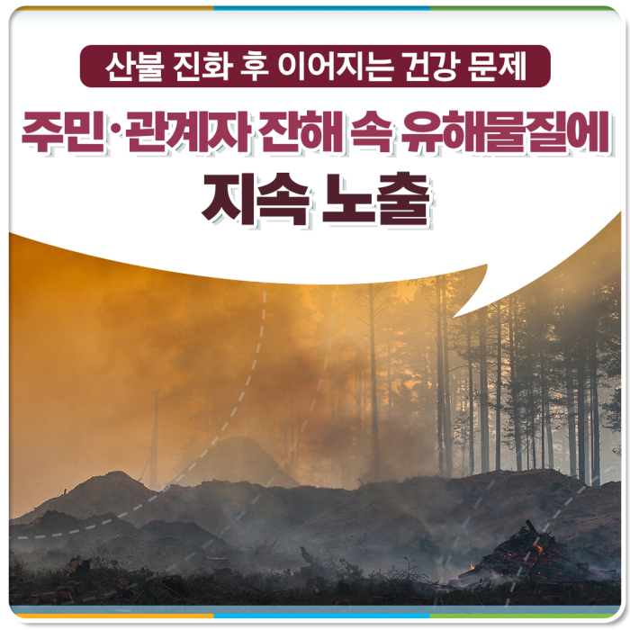 때문에 산불 진화는 물론 잔해 정리에 참여하는 △소방관 △산불재난특수진화대 △군인 △자원봉사자 △인근 주민들은 건강 이상에 대해 지속적으로 추적 관리하는 것이 필요합니다.