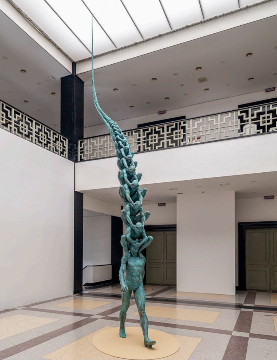 이 전시에서 관람객을 가장 먼저 맞이한 작품은 서도호의 설치 조각이었다. 국립현대미술관 덕수궁관 로비 한가운데, 2층 바닥부터 3층 천장까지 닿도록 높이 쌓은 인물 군상. 앞으로 걸어가려는 사람의 어깨 위로 또 다른 이들이 올라탄 구조다. 아래 사람의 눈은 위 사람의 손에 가렸다. ‘나’라는 존재를 이루기까지 거쳐 온 앞선 이들의 축적된 시간과 업보를 암시한 이 작품은, 그 자체로 인과의 사슬이자 업의 형상이다.