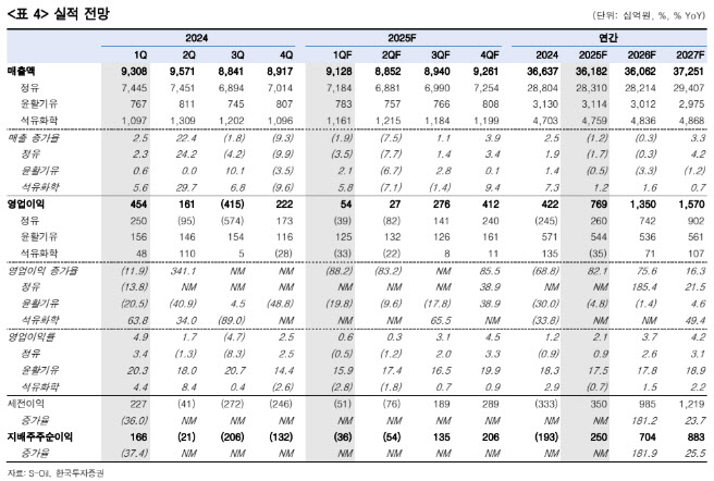 동절기 등·경유 수요가 예상보다 약했던 탓에 정제마진이 전 분기 대비 2달러 하락하며 정유 부문의 적자로 이어지리라고 전망했다. 화학 역시 PX 시황 부진이 이어진 가운데 벤젠, PO 등 제품 마진이 악화하며 적자 폭이 확대되리라고 봤다. 대신 윤활기유는 시황이 탄탄하게 유지된 상황에 정기보수가 일단락되면서 상대적으로 선방할 것으로 예상했다.