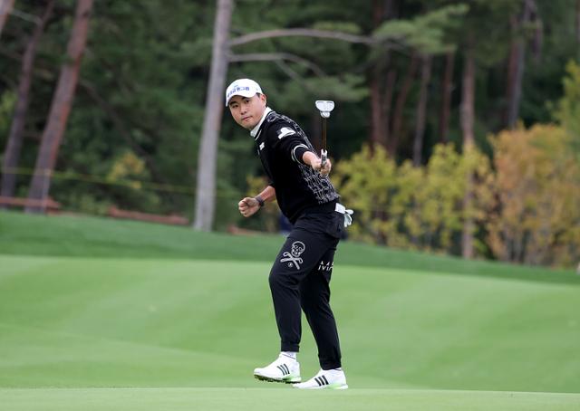 올해 장유빈이 떠난 KPGA 투어를 지배할 강력한 후보로 조우영이 꼽힌다. 조우영이 지난해 10월 더채리티클래식에서 우승 퍼트를 성공한 뒤 기뻐하고 있다. KPGA 제공 |