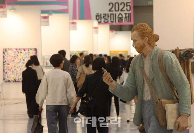 [이데일리 이영훈 기자] 16일 서울 강남구 코엑스에서 열린 '2025 화랑미술제'VIP 프리뷰'에서 관람객들이 전시된 작품들을 둘러보고 있다.
