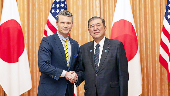 지난달 30일 피트 헤그세스 미 국방장관이 이시바 시게루 일본 총리를 면담하고 있다. AP=연합뉴스 |
