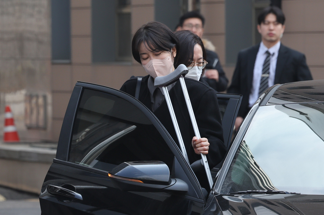 음주운전과 불법 숙박업 혐의로 불구속기소 된 문재인 전 대통령의 딸 다혜 씨가 지난달 20일 서울서부지법에서 열린 도로교통법상 음주운전 및 공중위생관리법 위반 혐의 사건 첫 공판기일에서 징역 1년을 구형받은 뒤 청사를 떠나고 있다. 연합뉴스 |