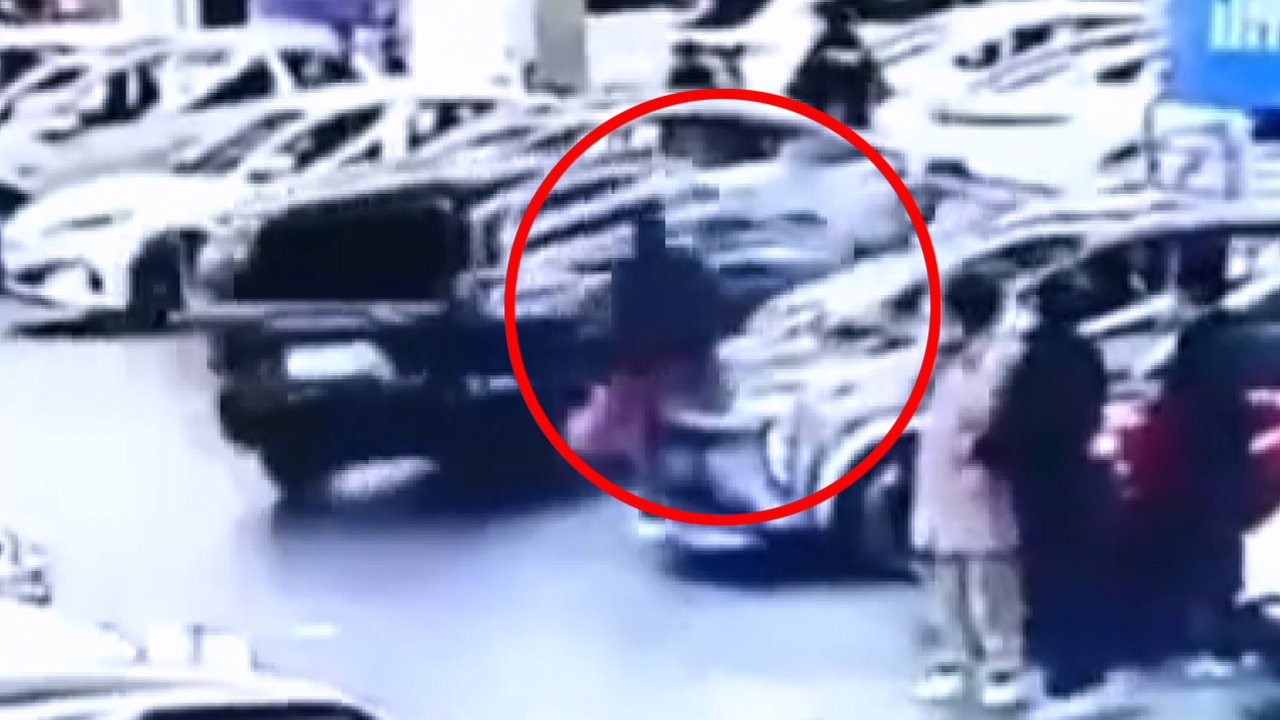 현지 시각 13일, 중국 랴오닝성의 산업전시관에서 검은색 차량이 갑자기 튀어나옵니다.
