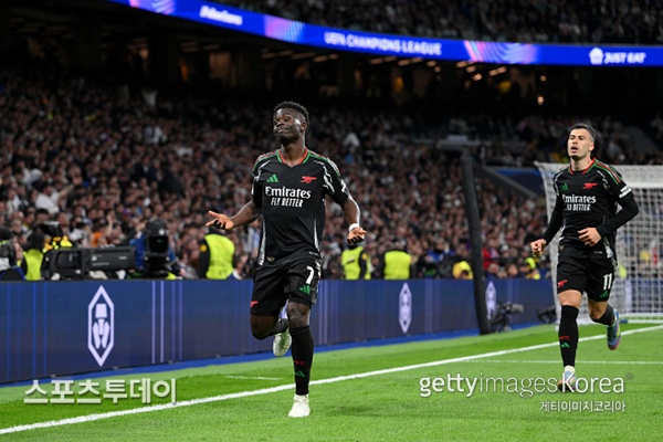 이날 3골차 리드를 안고 경기에 나선 아스널은 전반 10분 만에 레알 마드리드 수비수 라울 아센시오의 반칙으로 페널티킥 찬스를 잡았다. 하지만 부카요 사카의 슈팅이 티보 쿠르투아 골키퍼의 선방에 막혔다.