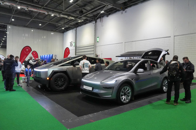 테슬라 전기차가 16일(현지시간) 영국 런던에서 열린 가정 에너지 및 전기 자동차 전시회인 에브리씽 일렉트릭에 전시돼 있다.(사진=로이터) |