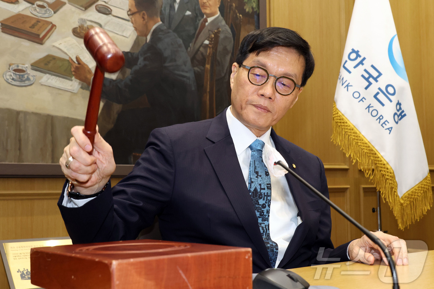 이창용 한국은행 총재가 17일 서울 중구 한국은행 본관에서 열린 금융통화위원회 본회의에 개회를 선언하는 의사봉을 치고 있다. 2025.4.17/뉴스1 |