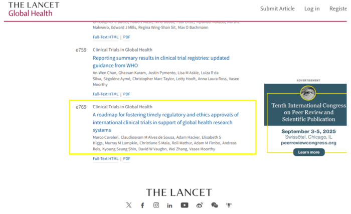글로벌 의학전문 학술지 란셋 4월호에 게재된 '글로벌 임상시험 효율성을 높이기 위한 로드맵'(자료=식품의약품안전처) |