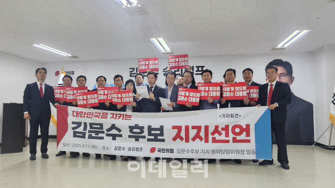 국민의힘 전국 원외 당협위원장 37명은 17일 서울 여의도 대하빌딩에 마련된 김문수 승리캠프에서 “김 후보는 자유민주주의 철학과 신념에 기반한 일 잘하는 후보”라며 지지를 선언했다. (사진=이데일리 박민 기자) |