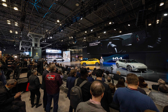 '2025 뉴욕 국제 오토쇼' 기아관에서 미디어 발표회가 진행되고 있다. [사진=기아] |