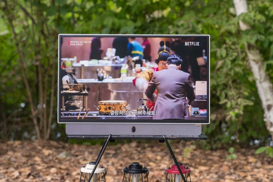 또한 어느 장소에서나 안정적으로 거치가 가능한 삼각형 구조 디자인, 빛 반사를 줄여주는 논글레어 패널, 강력한 내장 스피커는 캠핑은 물론 다양한 야외 환경에서도 만족스러운 사용 경험을 제공한다.