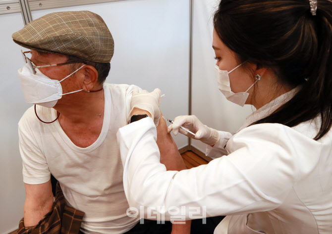 지난 2021년 4월 15일 서울의 한 코로나19 예방접종센터에서 만 75세 이상 어르신이 화이자 백신을 접종하고 있다. (사진=이데일리 노진환 기자) |
