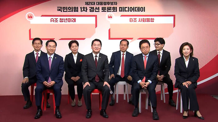 4명씩 2개 조로 진행되는 이번 경선 토론회는 김문수, 안철수, 유정복, 양향자 후보가 첫 번째 토론회, 나경원, 이철우, 한동훈, 홍준표 후보가 두 번째 토론회에 배정됐습니다.
