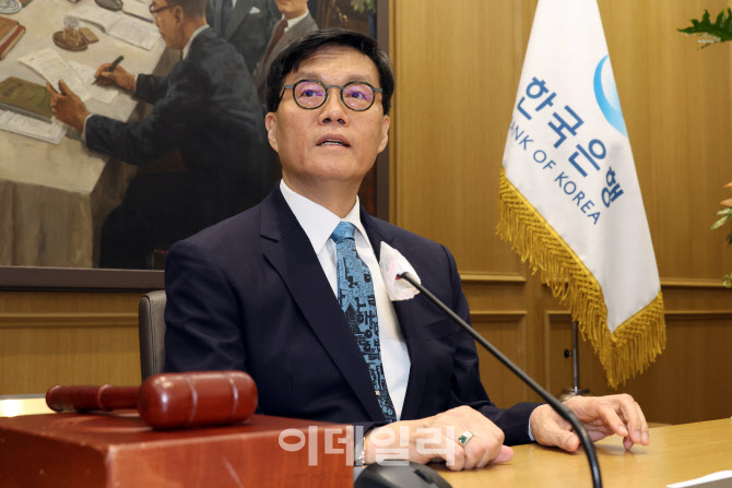 [사진공동취재단] 이창용 한국은행 총재가 17일 서울 중구 한국은행에서 열린 금융통화위원회 통화정책방향 회의를 주재하고 있다. 2025.04.17. |
