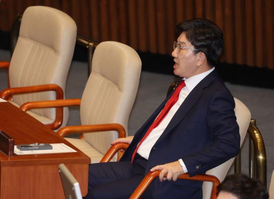 권성동 국민의힘 원내대표가 15일 국회 본회의에 참석해 본회의 개의 등을 요구하며 소리치고 있다. 연합뉴스 |