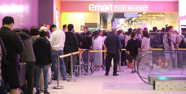 17일 오전 이마트 푸드마켓 고덕점 오픈을 기다리는 고객들. / 사진=이마트 |