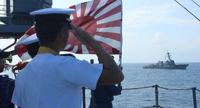 일본 해상자위대가 미국 해군과 연합훈련을 하고 있다. 일본 해상자위대 페이스북 갈무리 |