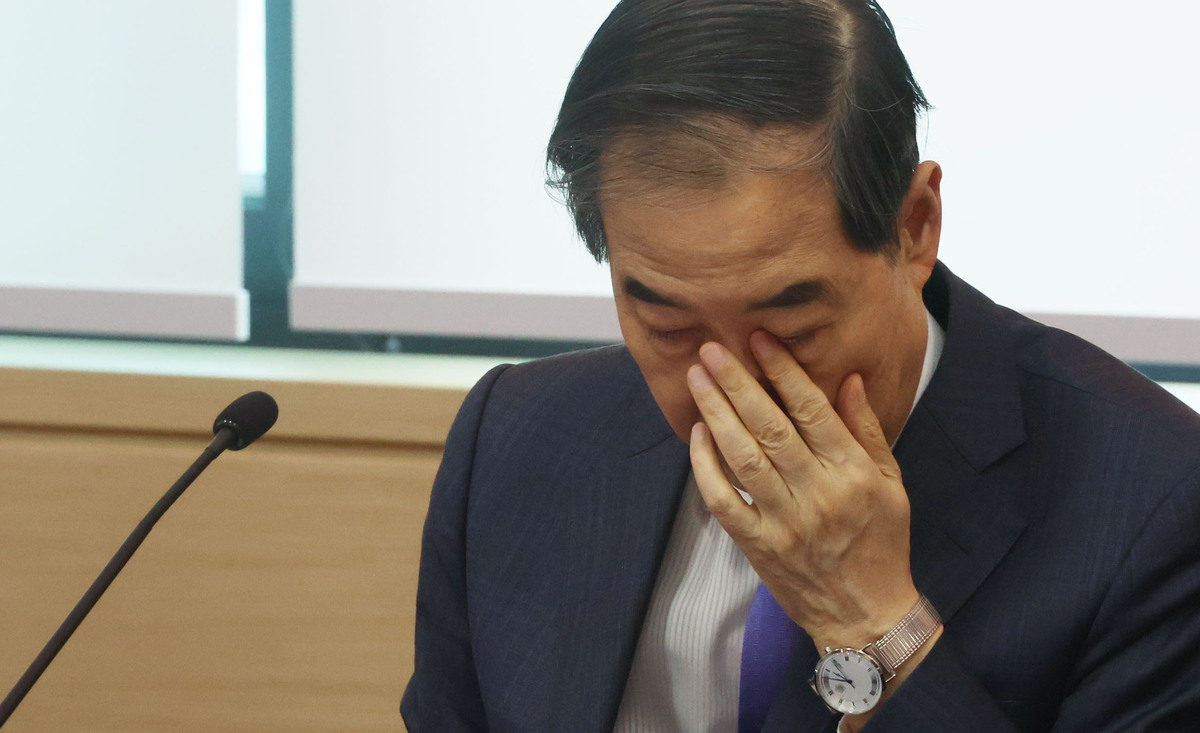 고심 대통령 권한대행 한덕수 국무총리가 17일 서울 광화문 정부서울청사에서 열린 제6차 아시아태평양경제협력체(APEC·에이펙) 정상회의 준비위원회를 주재하며 얼굴을 만지고 있다. 총리실 제공 |