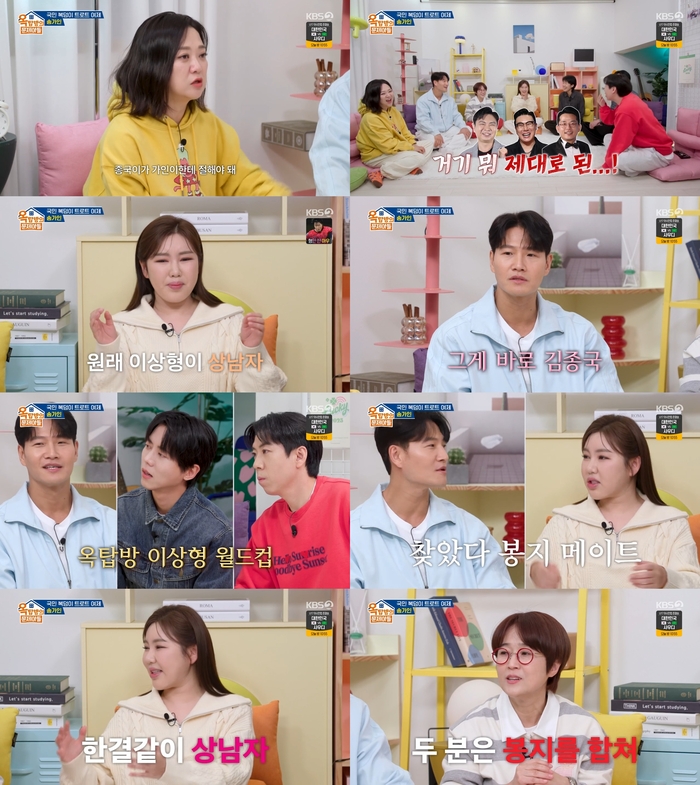 송가인은 이상형으로 김종국을 뽑았다. 송은이는 “보통 살림을 합친다는 표현을 쓰지만 두 사람은 봉지를 합치면 될 것 같다”고 말했다. 김종국은 “변호해주는 사람이 있으니까 좋다”고 했다.