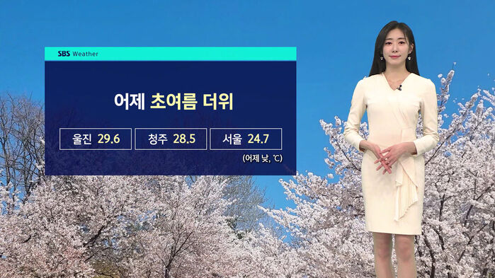 울진은 30도 가까이 오르는 등 충청 이남 지역에서는 때 이른 여름 더위가 나타났습니다.